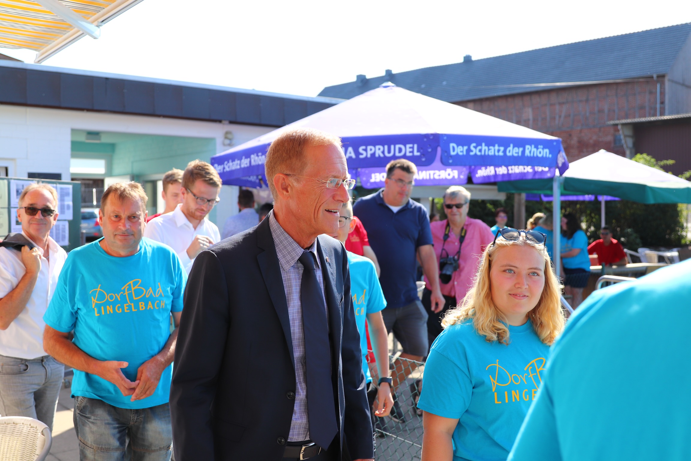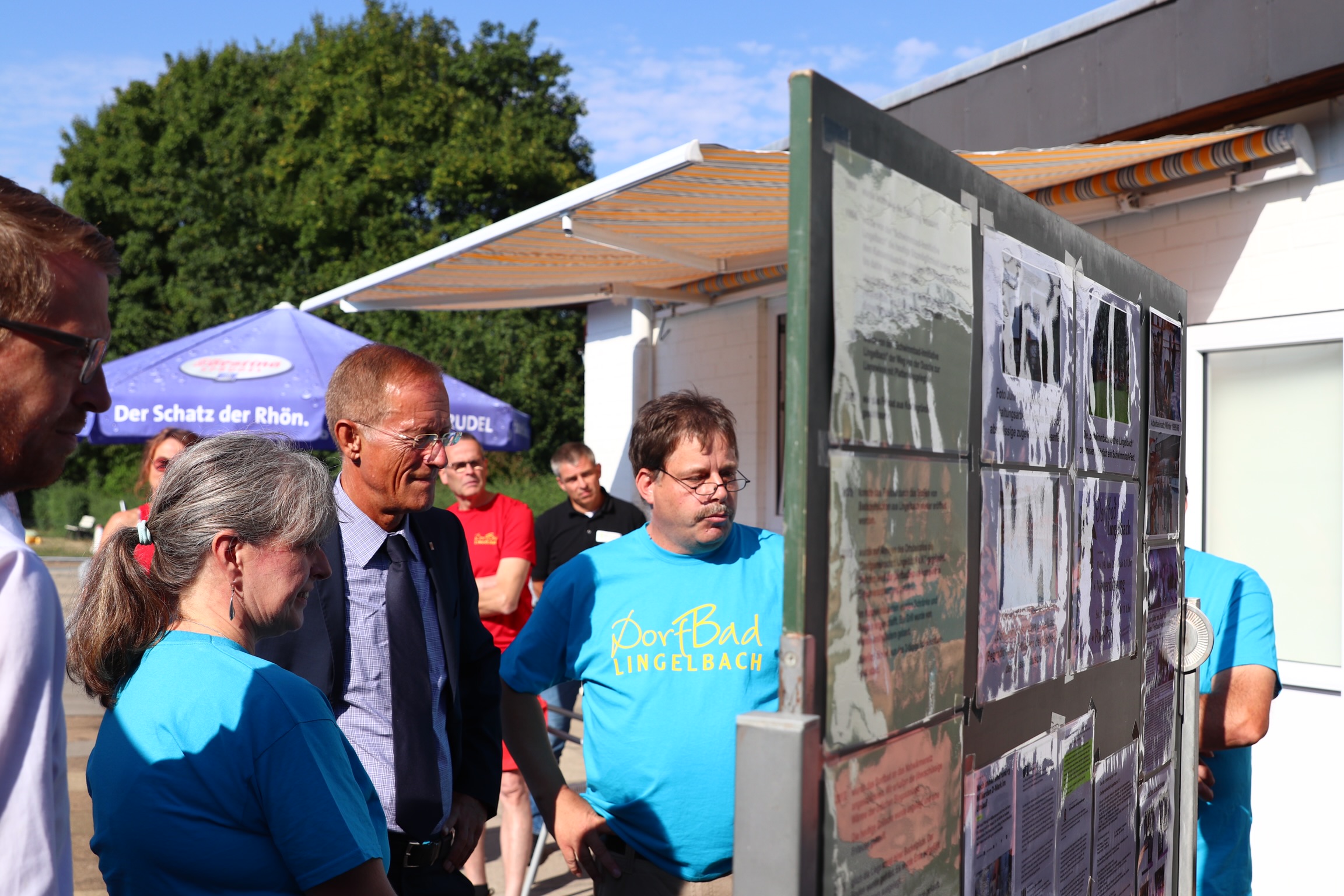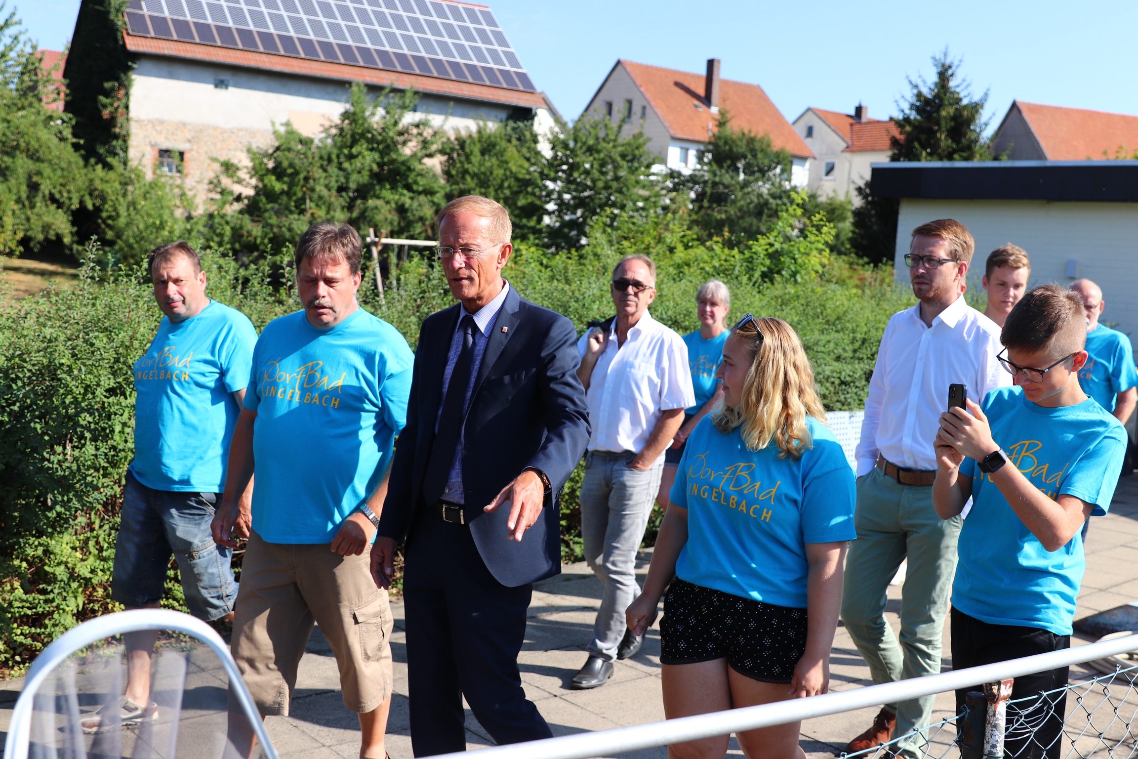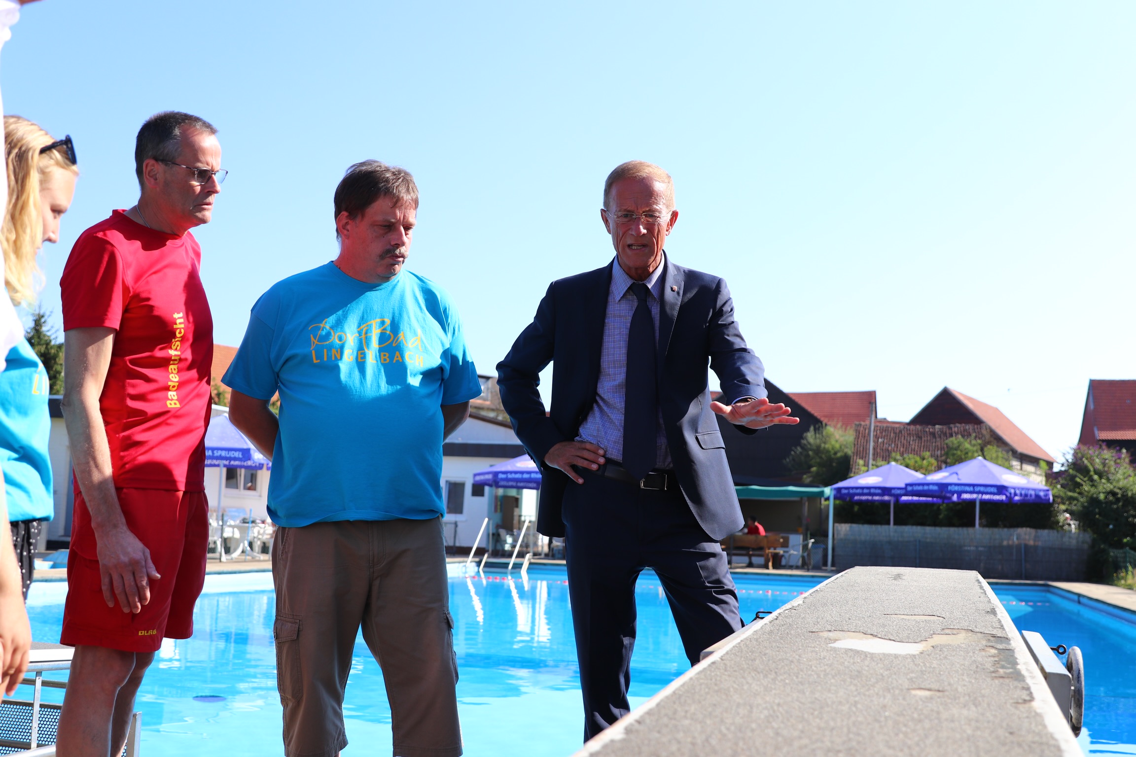 Der Chef der Staatskanzlei schaut sich auf seiner Demografie-Sommerreise das Dorfbad Lingelbach an