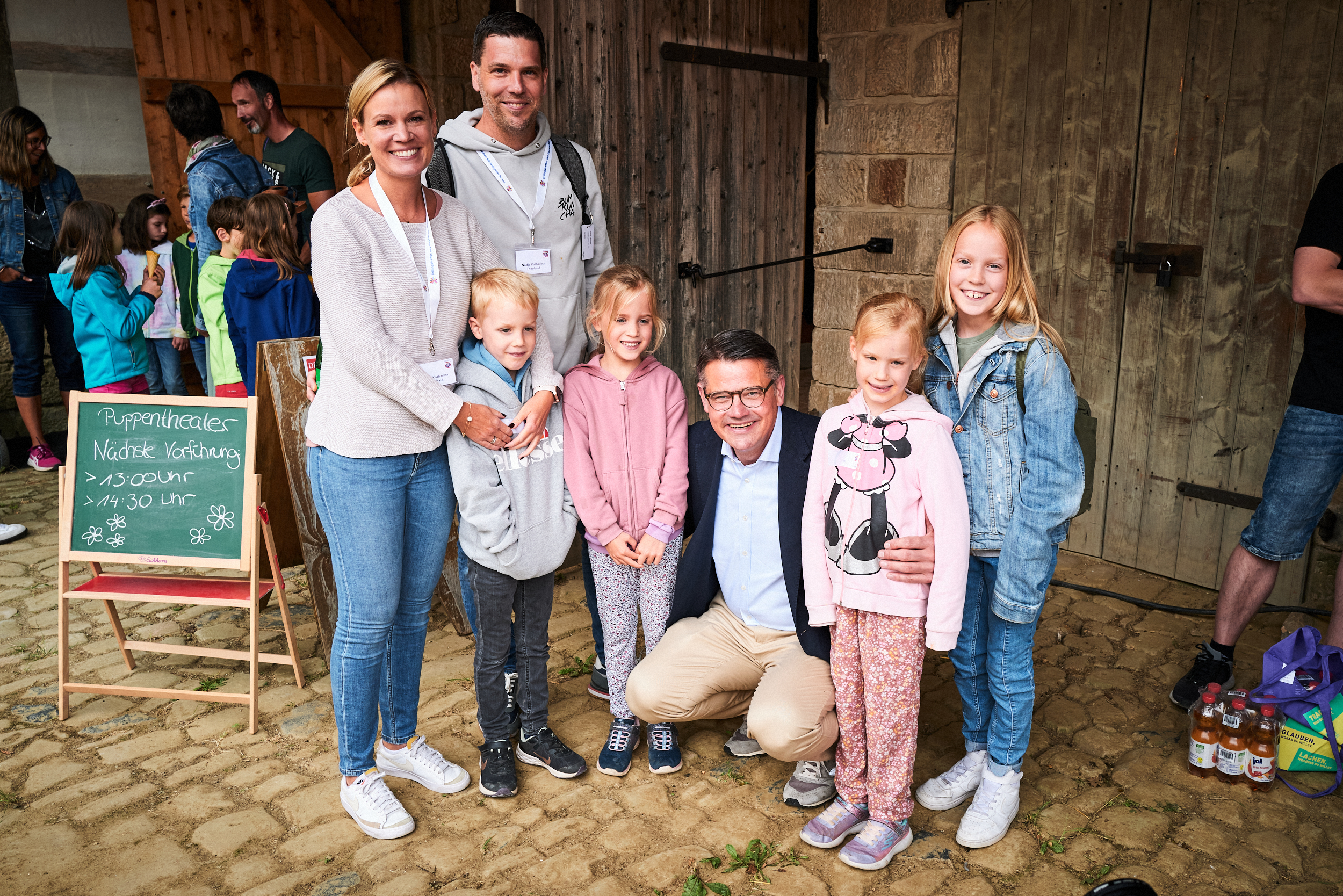 Ministerpräsident Boris Rhein mit Mehrlingen im Hessenpark in Neu-Anspach.