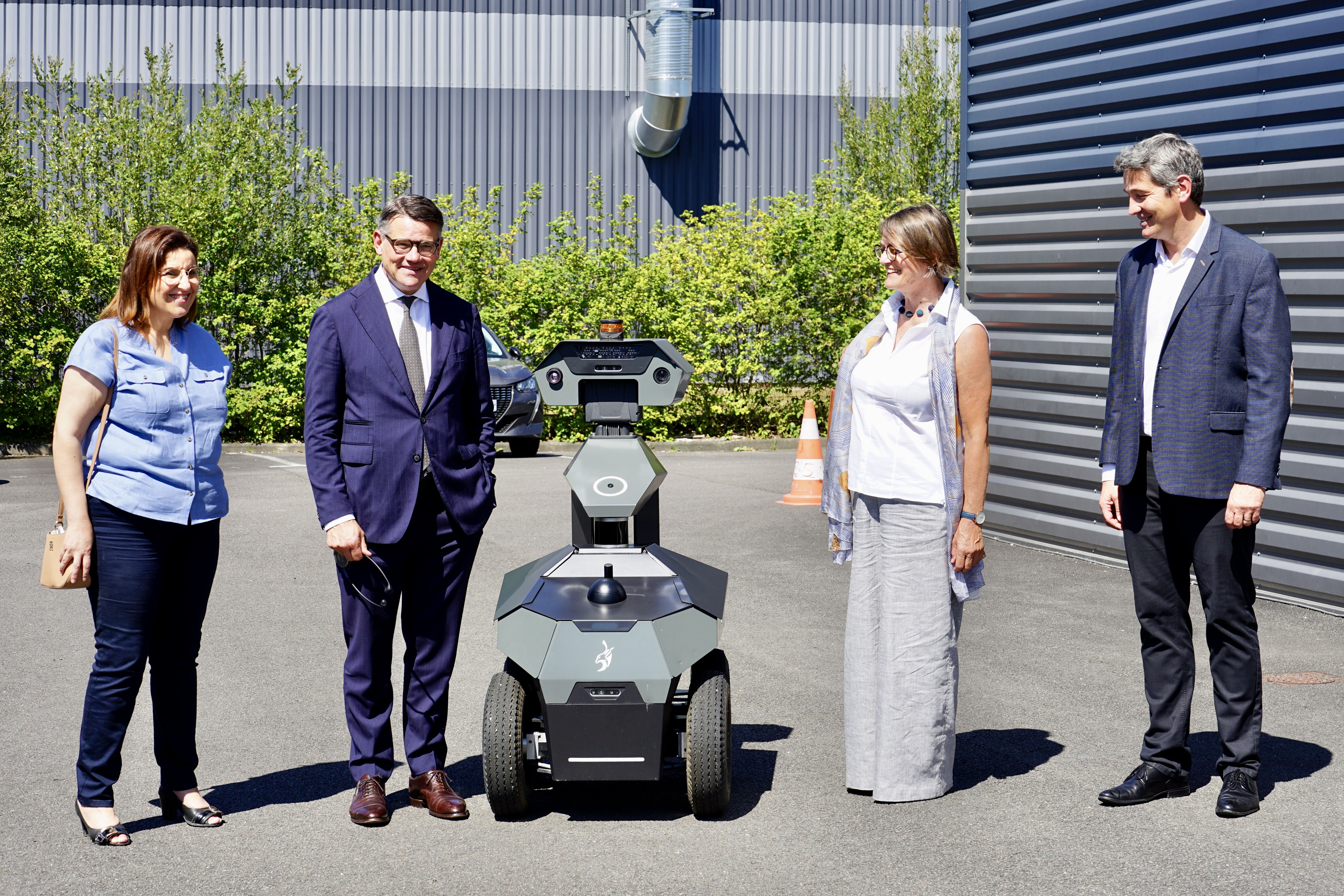 Bei NGX Robotics informierte sich Ministerpräsident Rhein über den Einsatz von Robotern in der Sicherheits- und Verteidigungstechnik.