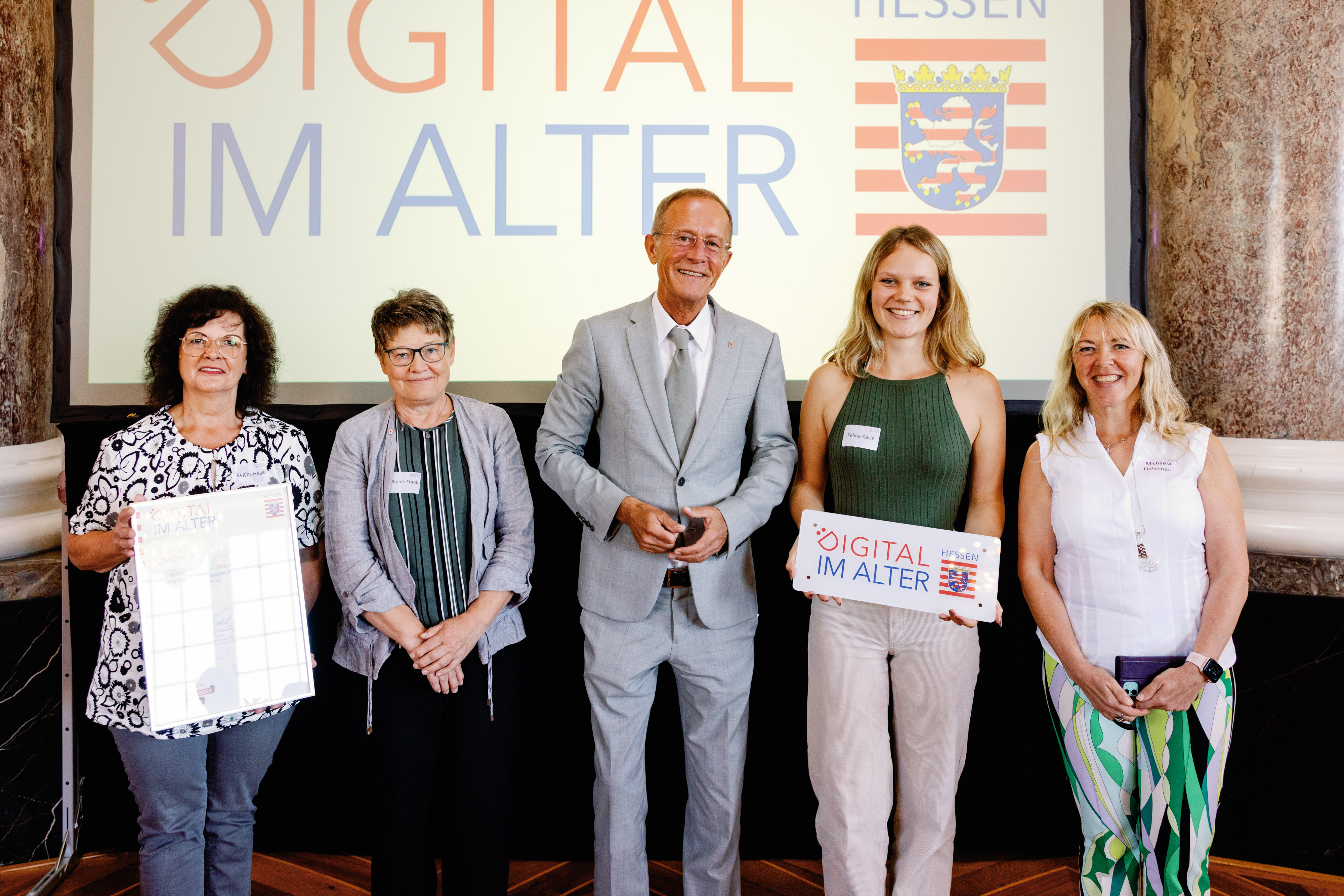 Der Chef der Hessischen Staatskanzlei, Staatsminister Axel Wintermeyer, hat das DRK Frankenberg gGmbH beim 2. Di-Lotsen-Tag in Wiesbaden als Di@-Lotsen-Stützpunkt begrüßt und ihnen die Urkunde überreicht.